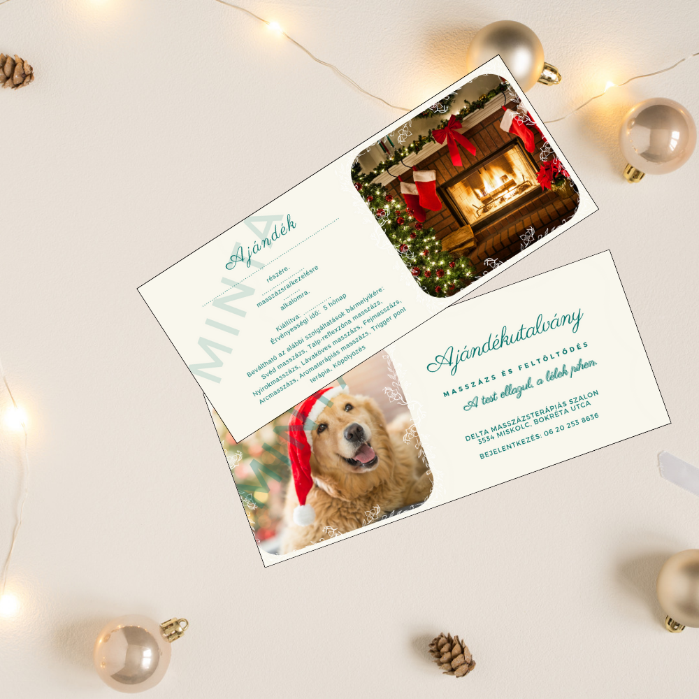 Lepd meg szeretteidet egy különleges ajándékkal! Ajándékozz egy szívmelengető karácsonyi élményt a Golden Retriever Mikulás sapkás ajándék utalvánnyal! A 60 vagy 90 perces masszázs tökéletes pihenést és feltöltődést kínál, hogy a megajándékozott elűzze a feszültséget és a mindennapi stresszt.